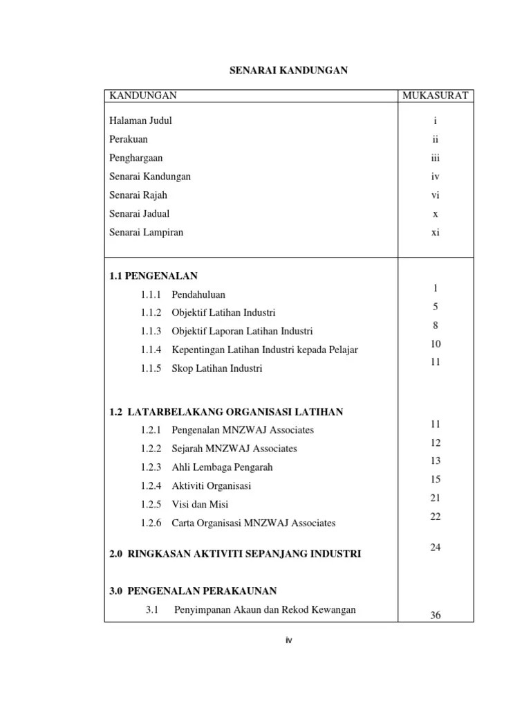 Contoh format laporan isi kandungan perkara halaman penghargaan i tajuk dan abstrak.